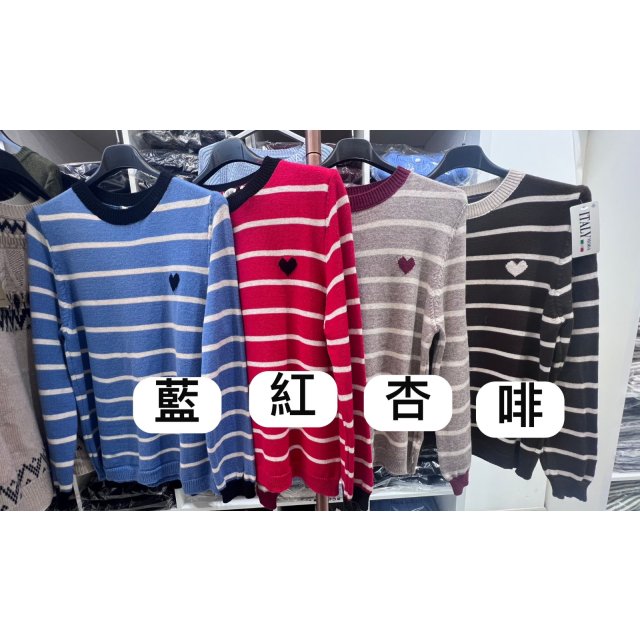 IH01 心形間條長袖毛衣