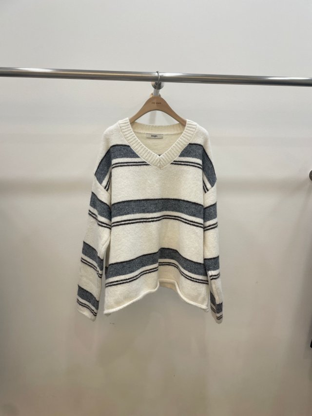DI25 V領間條長袖