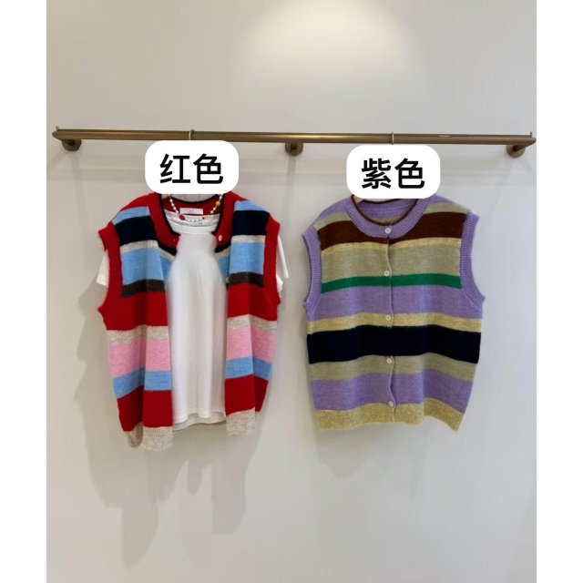 PE07 彩色間條背心外套
