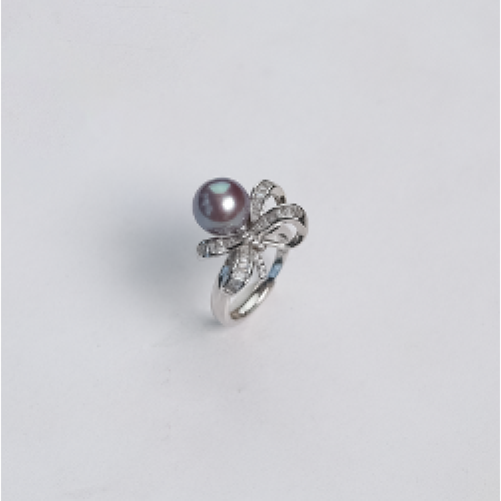 JA175 淡水紫珠t方鑽蝴蝶結戒指