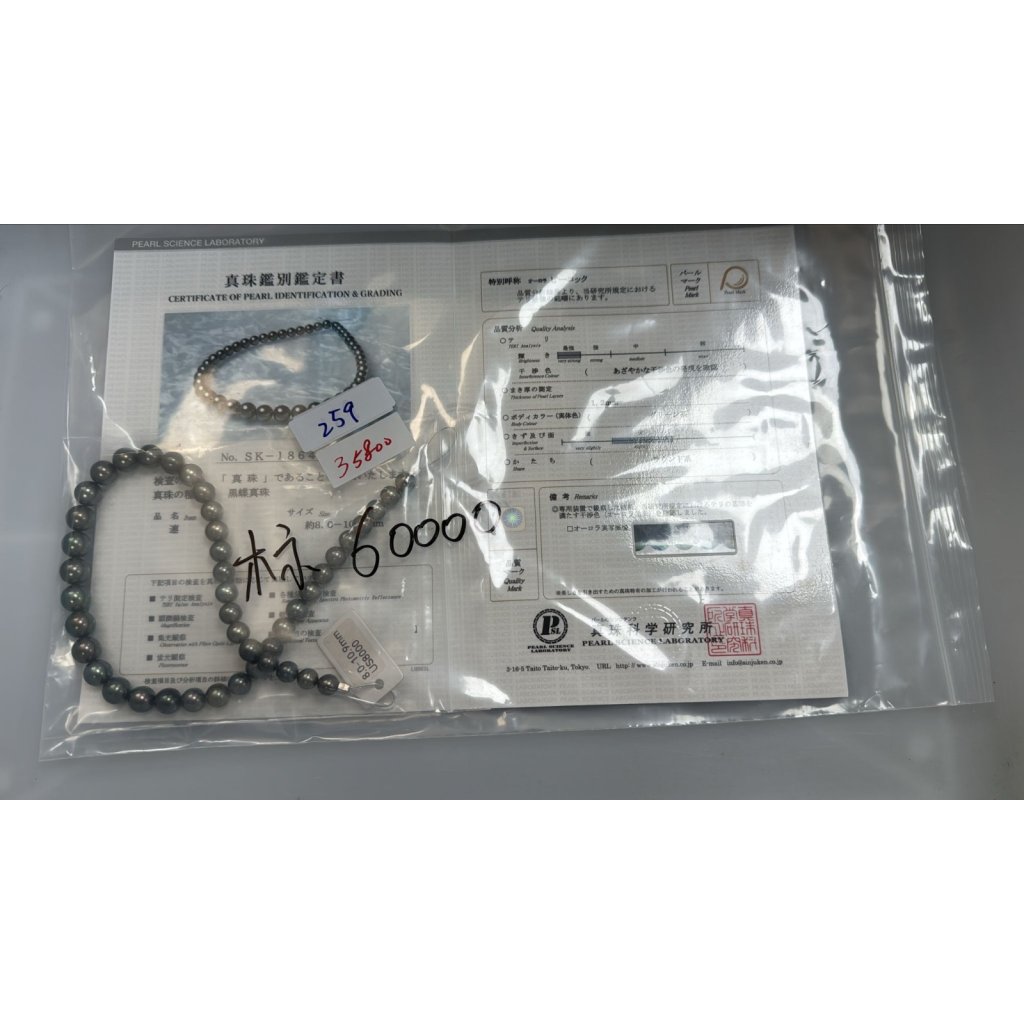 JA259 【附真珠鑑定書】