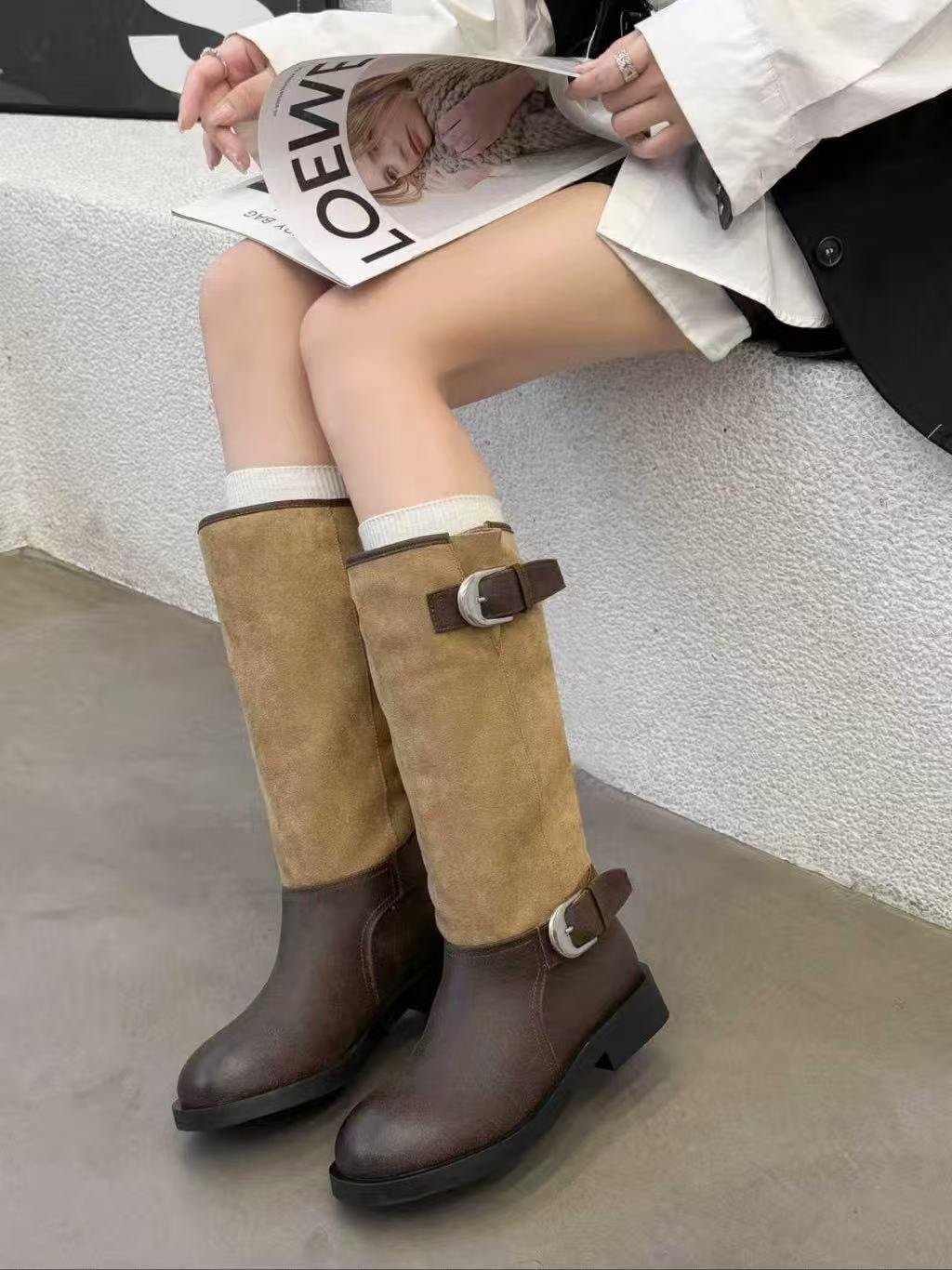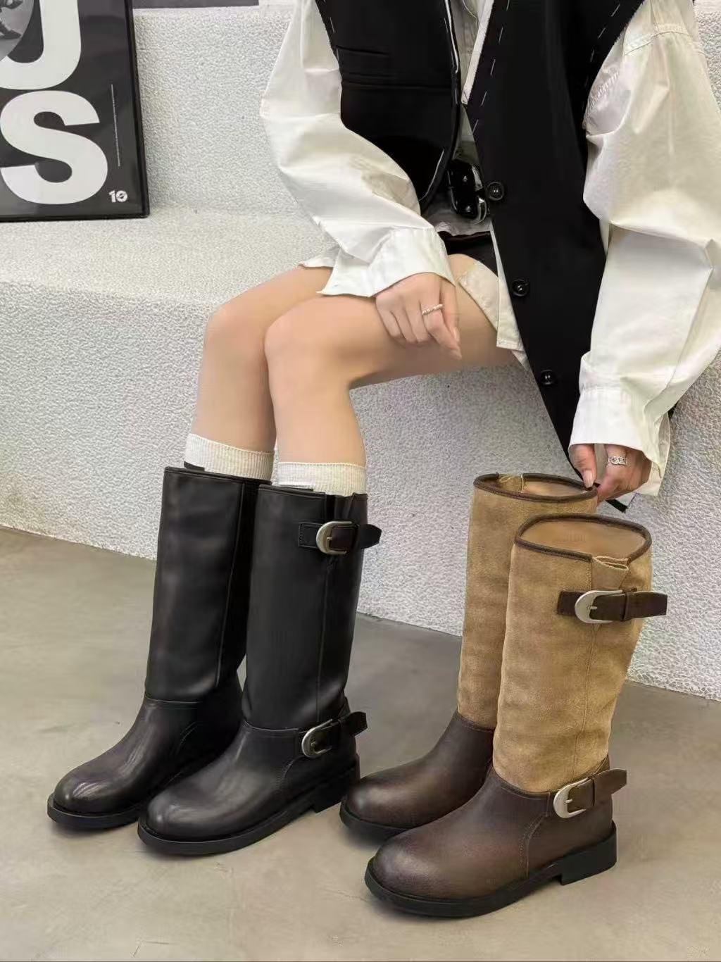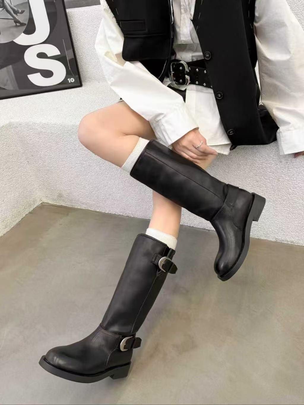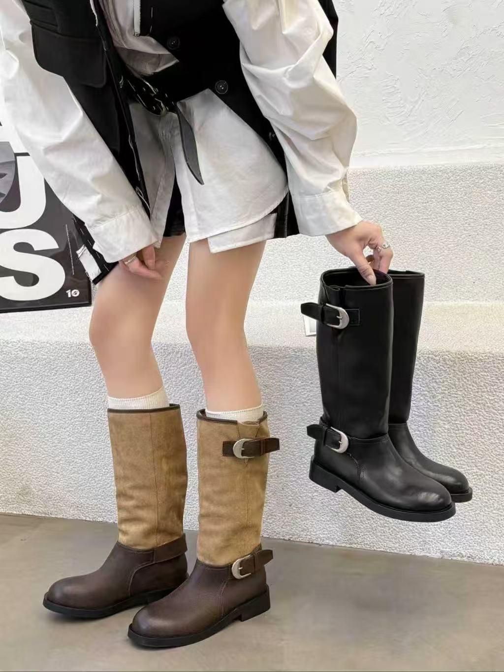 DM01 牛皮真皮雙扣長靴