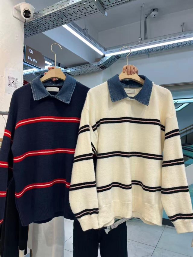 LL214 間條假兩件長袖上衣